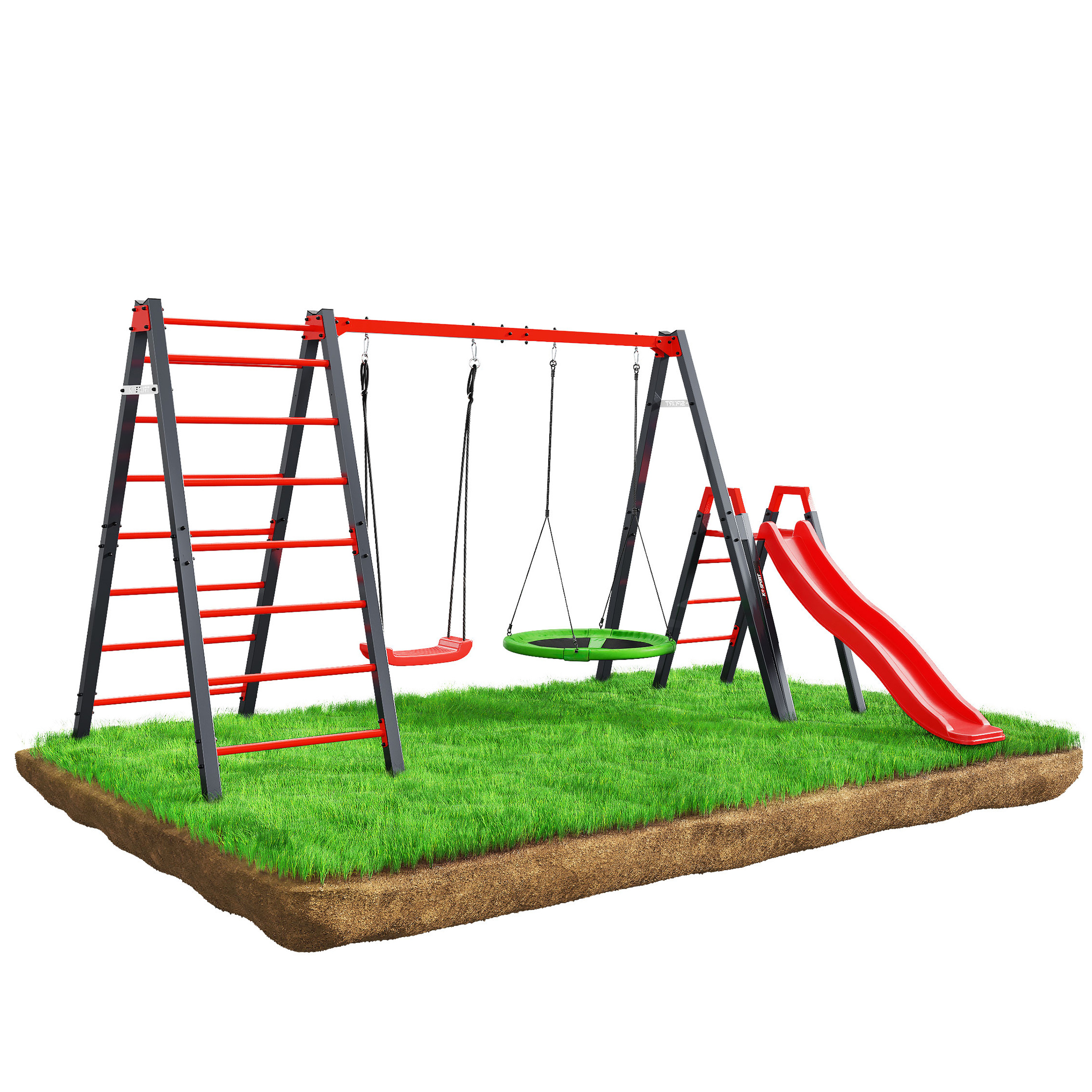 Huśtawka ogrodowa z drabinką podwójna i zjeżdżalnia bocianie gniazdo KSOZ020