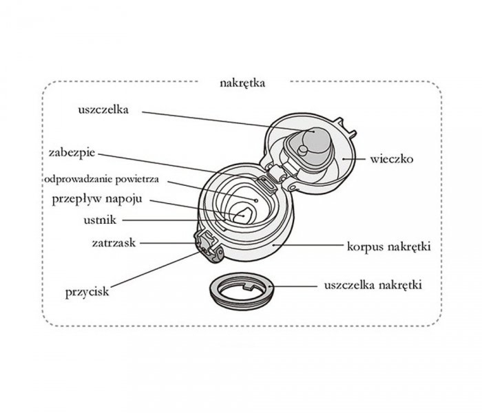 Przykrywka do kubków termicznych marki Thermos Motion do modeli: 130061, 130060. Kompletna przykrywka zawiera uszczelkę górną i dolną, umożliwia otwieranie jedną ręką. Instrukcja: 1 – odbezpiecz blokadę, 2 – naciśnij dolną część przycisku, 3 – wieczko otworzy się. Praktyczny design nakrętki i uszczelki termosu umożliwia łatwą konserwację i dokładne mycie. Wykonana z materiałów przyjaznych dla człowieka - bpa free. ...
