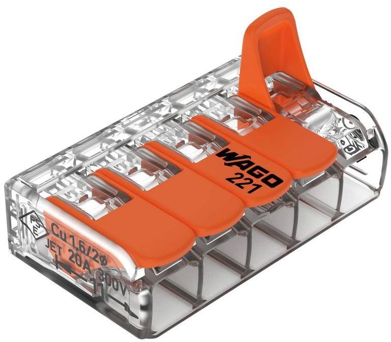 Szybkozłączka uniwersalna LINKA/DRUT 5x 0,2-4mm2 WAGO 221-415 (Paczka 25szt.)
